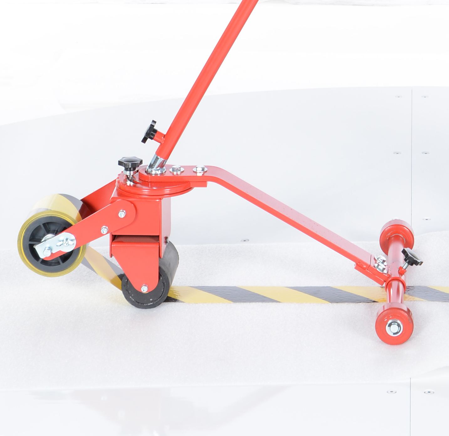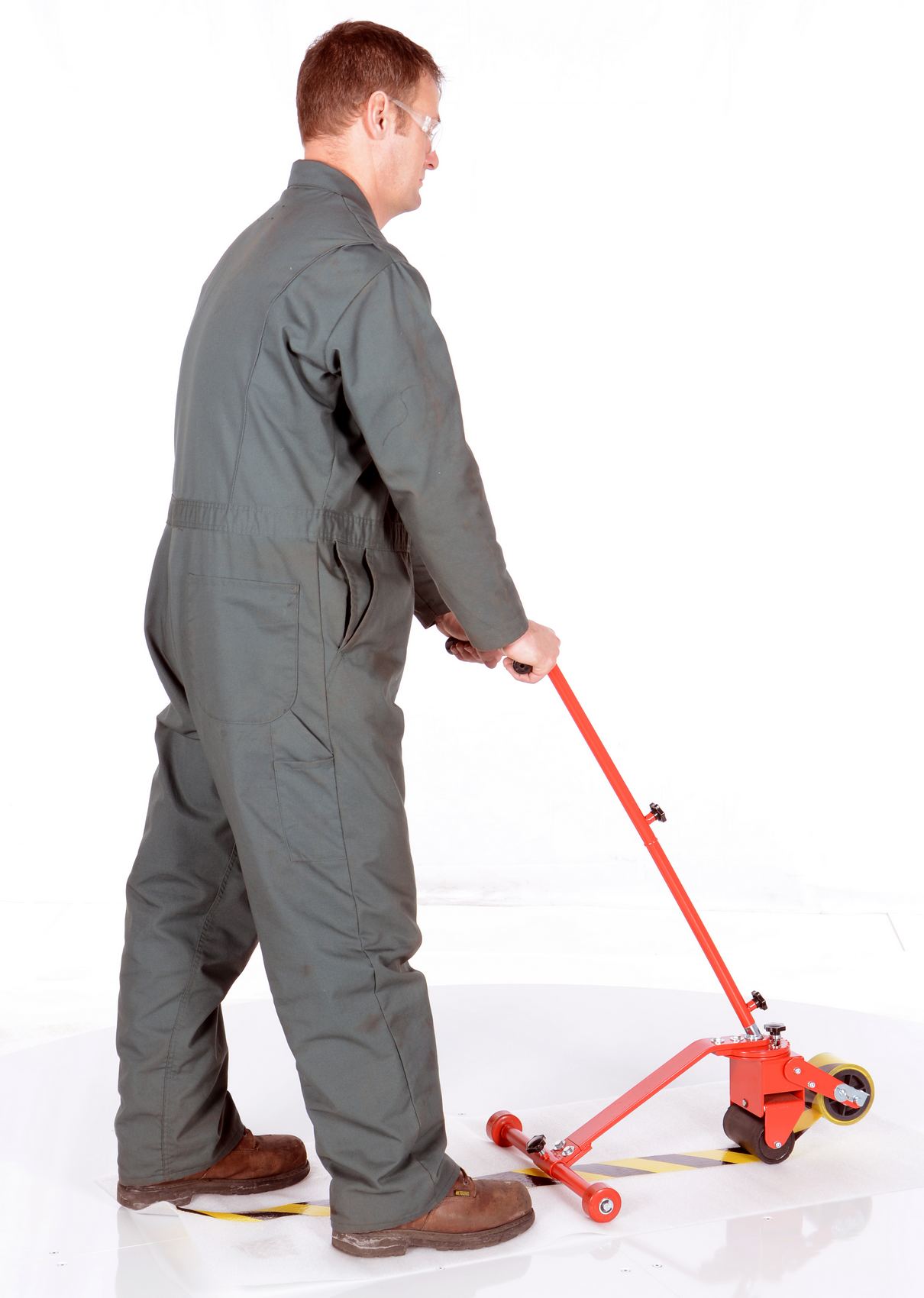 Steel Floor Tape Applicator 7 In. Maximum Roll RedThis floor tape applicator has an applicator head that adjusts quickly to apply tape in a circular path or in a long straight line. The rear stabilizer adjusts right to left to allow for marking next to walls and pallet racks.