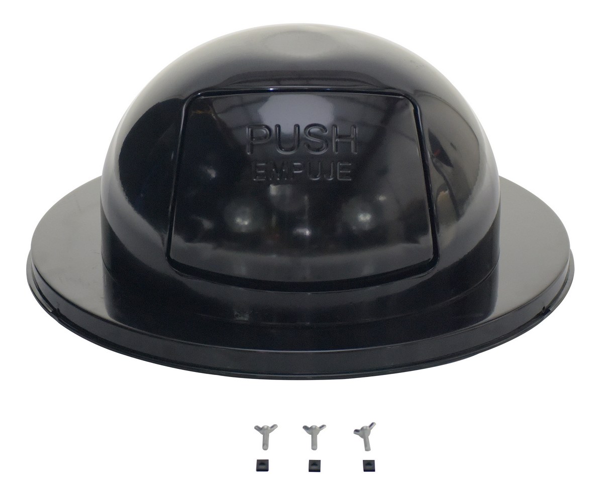 Convert empty drums into waste recycling, general or disposal containers with a waste disposal top. Spring-loaded door closes automatically to prevent bugs from entering. Lid has an outside diameter of 23-1/2”. Powder-coat finish minimizes scratches and abrasions.