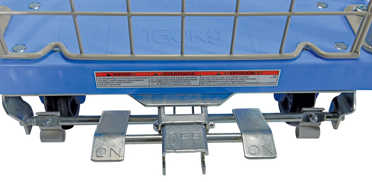 Plastic Truck Mesh Sides with Floor Brake 36-1/4 In. x 20 In. x 33-1/2 In. 330 Lb. Capacity BlueThe plastic platform cart is a great addition to the shipping and distributing facilities. The plastic platform creates a durable, yet lightweight construction that can be transferred simply from workstation to workstation. The unit rolls on casters for smooth transference over a variety of terrains, while the side nets enable the utmost security. The attached handle creates a more ergonomic posture of personnel during use, while the brake keeps the unit steady when not in progress.