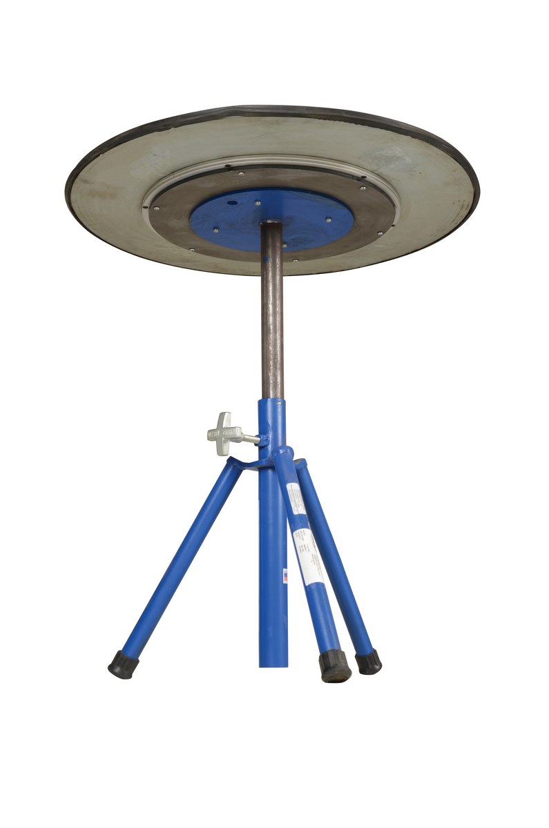 Steel Turntable 30 In. Diameter Manual 21-32 In. Height Adjustment 300 Lb. Capacity BlueThe heavy-duty manual turntable maximizes workspace and minimizes wasteful motion. Bench top turntables allow workers to stay in one position and rotate items for access from all sides. No need to walk around the table to access areas out of view. Easy and smooth bearing motion. Used in hundreds of applications; displays, paint spraying, assembly units, repairs, etc. The rugged steel construction has an easy, smooth rotation that won't jostle delicate parts. The unit features a turn knob height adjustment operation.
