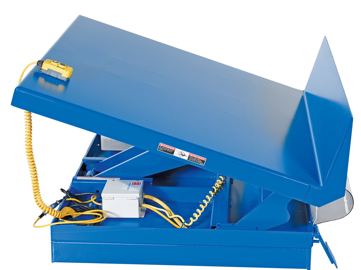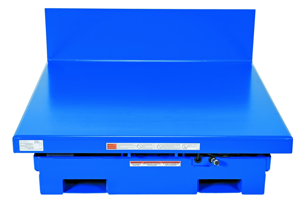 Steel Fork Truck Portable Uni-Tilt 48 In x 48 In 460 Volt 3 Phase 4,000 Lb. Capacity BlueThe portable Uni-Tilt can transport your tilter from workstation to workstation quickly and easily with a fork truck. The unique design reduces fatigue by minimizing repetitive bending and stretching required to obtain components from containers. The platform has a high lip the tilt side and a selector pedal that allows the operator to lift while tilting or tilt then lift. The unit has a hand pendant control standard and optional voltages available.