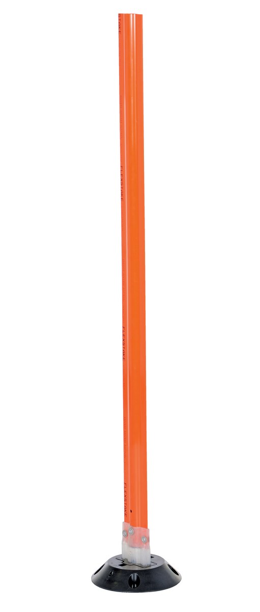 Polycarbonate Surface Flexible Stakes 48 In. x 3-1/4 In. OrangeA surface mount flexible stake is ideal for high traffic and high impact locations. Constructed of polycarbonate extrusion and flexible hinge which makes it virtually indestructible. Easy four (4) part assembly which is the post and hinge, base, grips and pin. Quick to install, they can be mounted to concrete, asphalt, wood and other hard surfaces using appropriate hardware (not included). FAA approved.