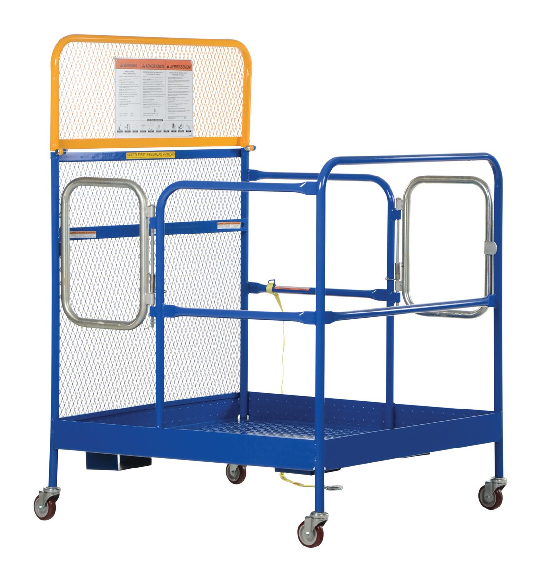 Poly caster set for the work platform allows you to move your unit without a fork truck.