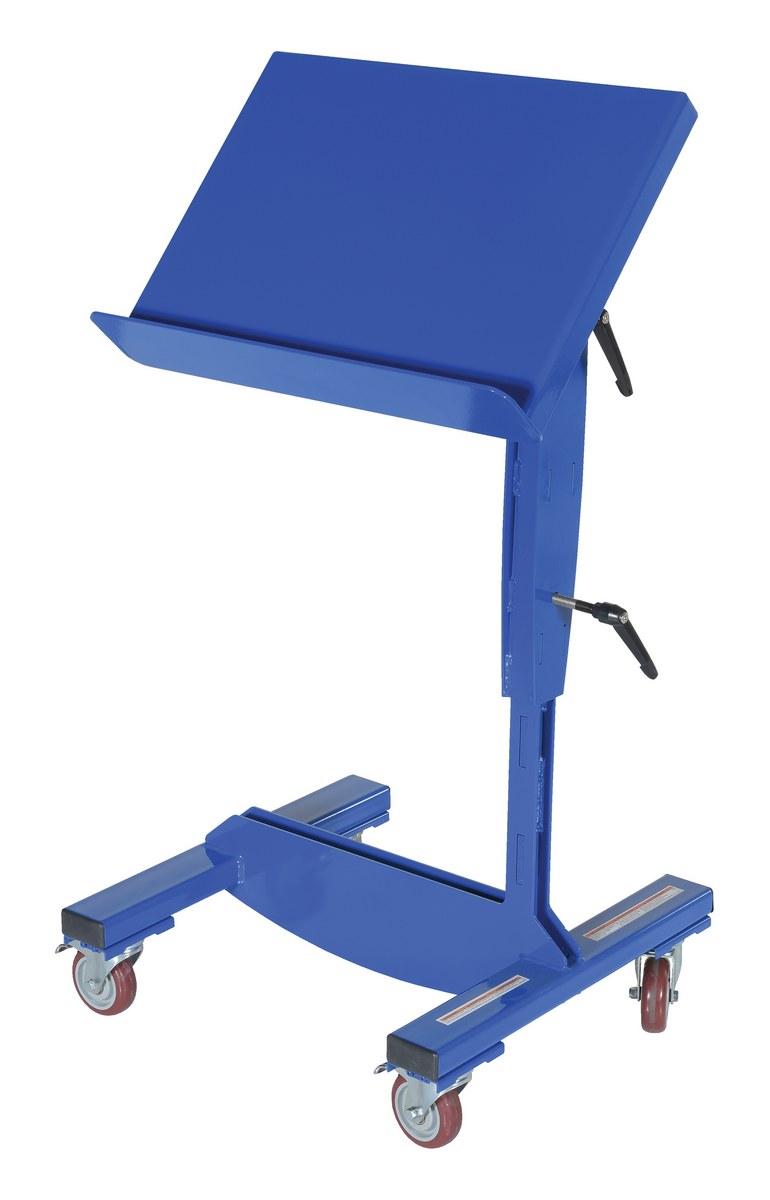 Steel Mobile Tilting Work Table 16 In. x 24 In. 200 Lb. Capacity BlueThe mobile tilting work table is designed to bring work to an ergonomically correct position. A raised edge provides stability when completing forms or compiling inventory data. Open design that is accessible form all sides.